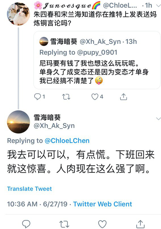 | 2019-06-29 07:40:30 | 你妈死力 | 俺来黑屁力 |