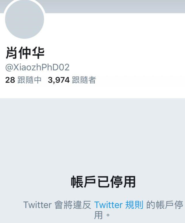 | 2019-05-31 19:07:11 | 李威 | 肖仲华推特是我举报的 |