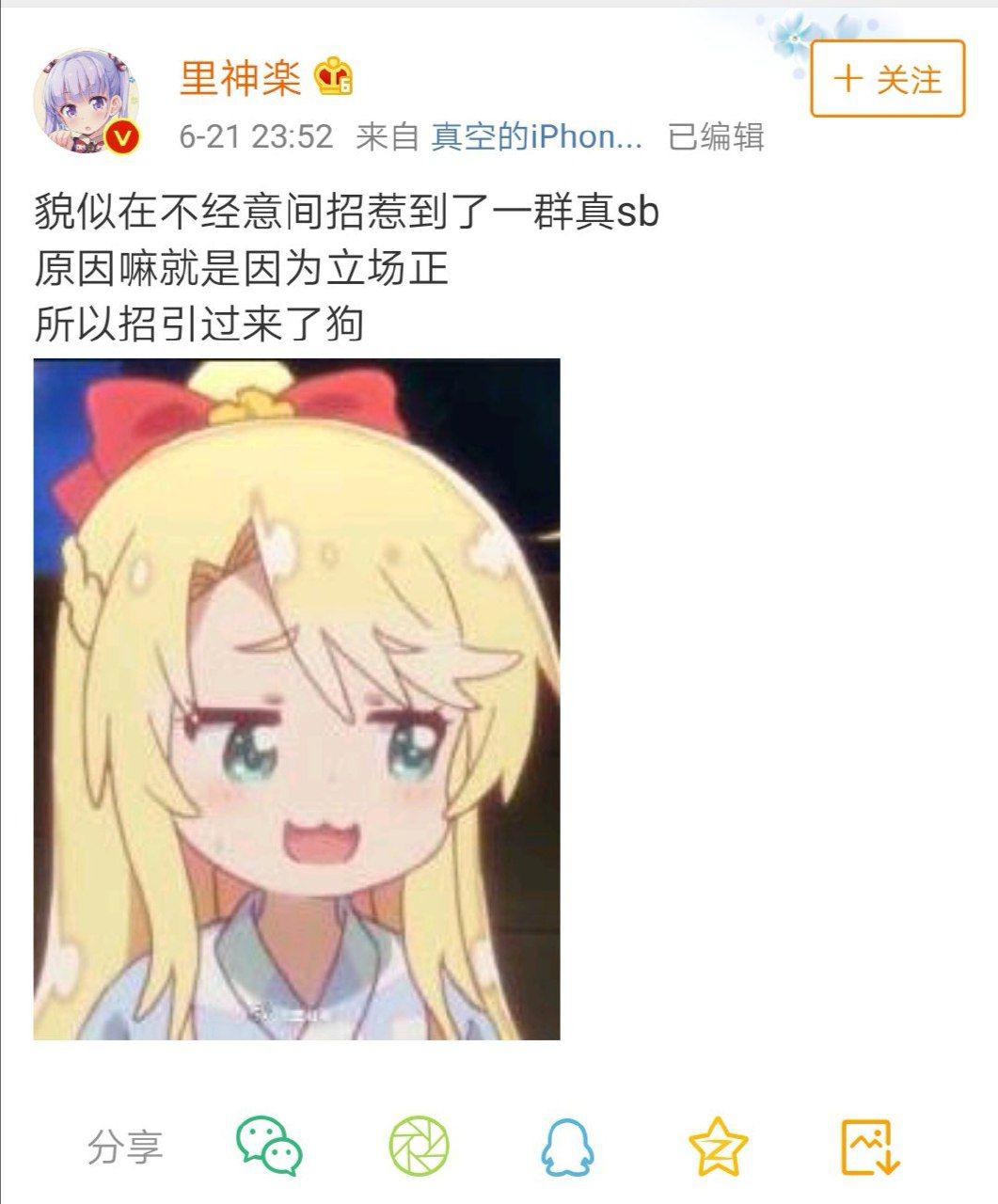 | 2019-06-24 15:33:04 | 外神樂 | 虽然我贾海西做浮力🐔卖批照炼铜营业,但我爱支啊 |