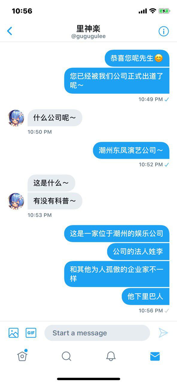 | 2019-08-15 12:59:28 | 神必人 | 很早以前就关注里神乐了,根据记忆我还是怀疑是贾海东有个双胞胎姐妹,他们共同运营里神乐这个账号,,, |